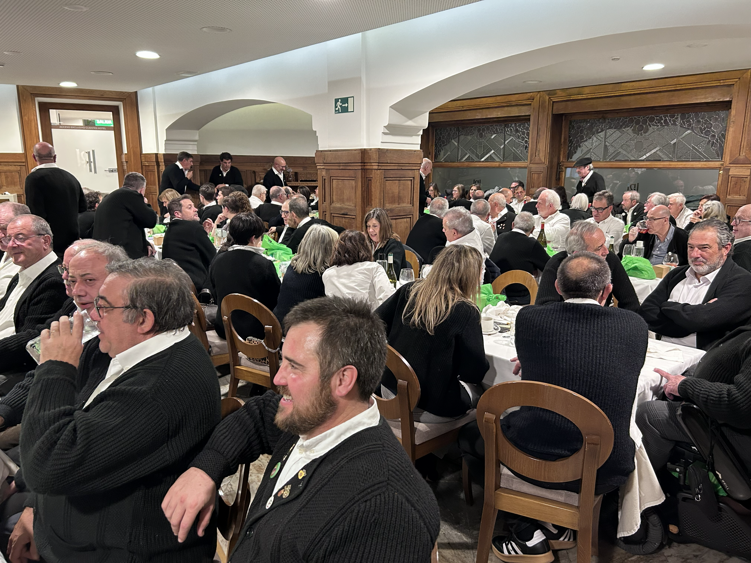 En este 2025 se volvieron a reunir algo más de un centenar de personas, ataviadas con la tradicional chaqueta, en el restaurante Remigio de Tudela para disfrutar el menú ya ligado a esta velada. Ensalada de la tierra, chistorra, sopas de ajo, pebre de conejo con caracoles y queso con dulce de membrillo y nueces, fueron acompañados por vinos de la bodega Gran Feudo.