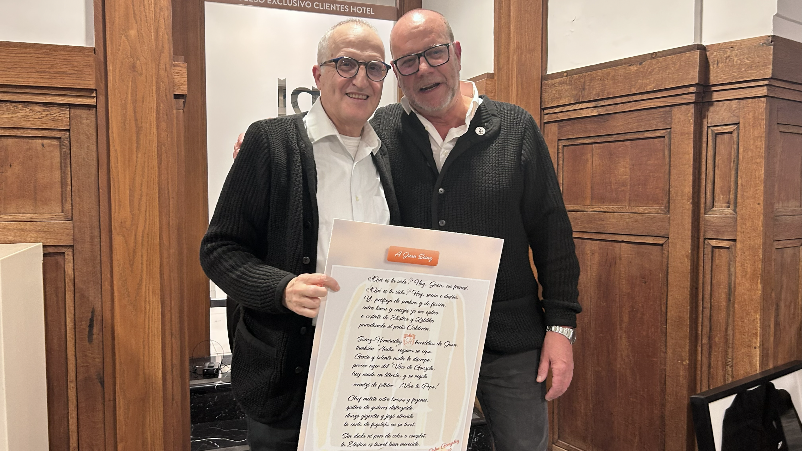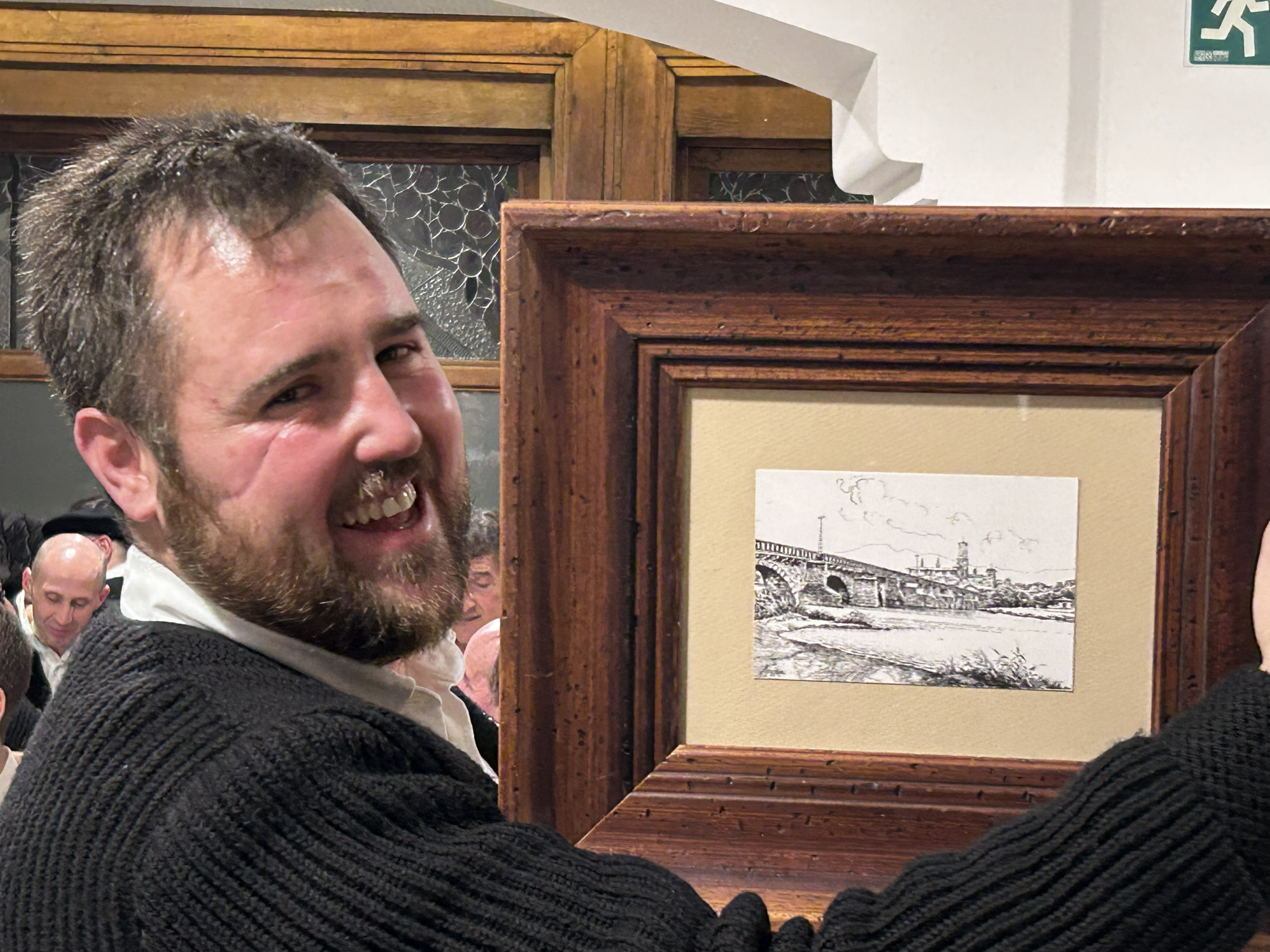 Otros de los reconocimientos que la entidad tudelana realiza después de la cena, es a una de las personas que lleva muchos años siendo fiel a esta cita. En esta ocasión Toño Ustarroz recibió un pequeño detalle por no fallar a esta cena con su grupo de amigos.